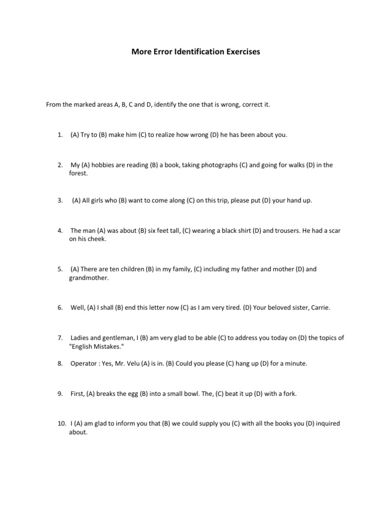 Error identification practices physical fitness newspapers. Your task is to identify and underline these errors. There are 10 errors altogether in the text. Documents similar to english pt3 format (error identification). Error identification ( road safety ). Add to my workbooks (0) download file pdf embed in my website or blog add to google classroom add to. Pt3 error identification exercise flood bodies of water. Success criterion 3.3.1 error identification (level a): A free resource of english learning and teaching materials. You have to be quick while having to be perfect. If users cannot identify their mistakes, they will leave. For english, error identification, information transfer, comprehension, literature. He was quite amusing when he heard what had happened.